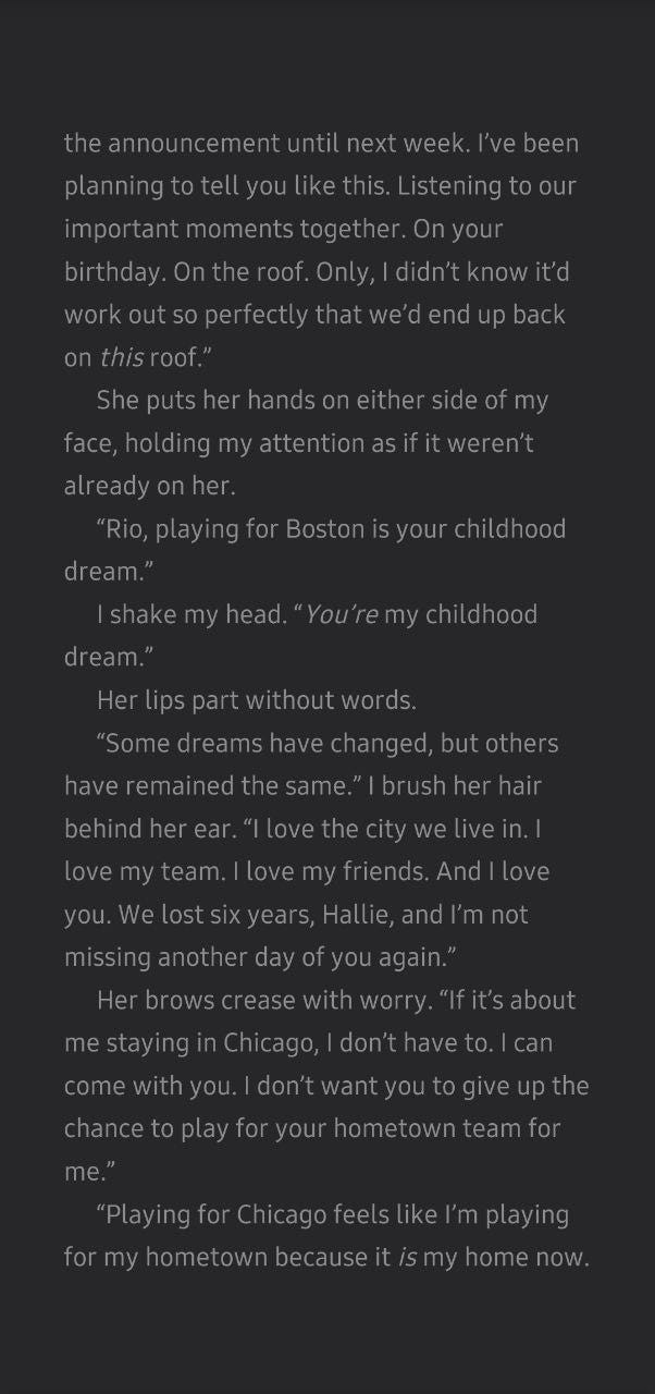Hallie grew up next door to Rio in Boston, sharing rooftop secret talks, birthday playlists, and the kind of friendship that easily slipped into young love. They fell hard at sixteen, then at twenty, everything shattered.
